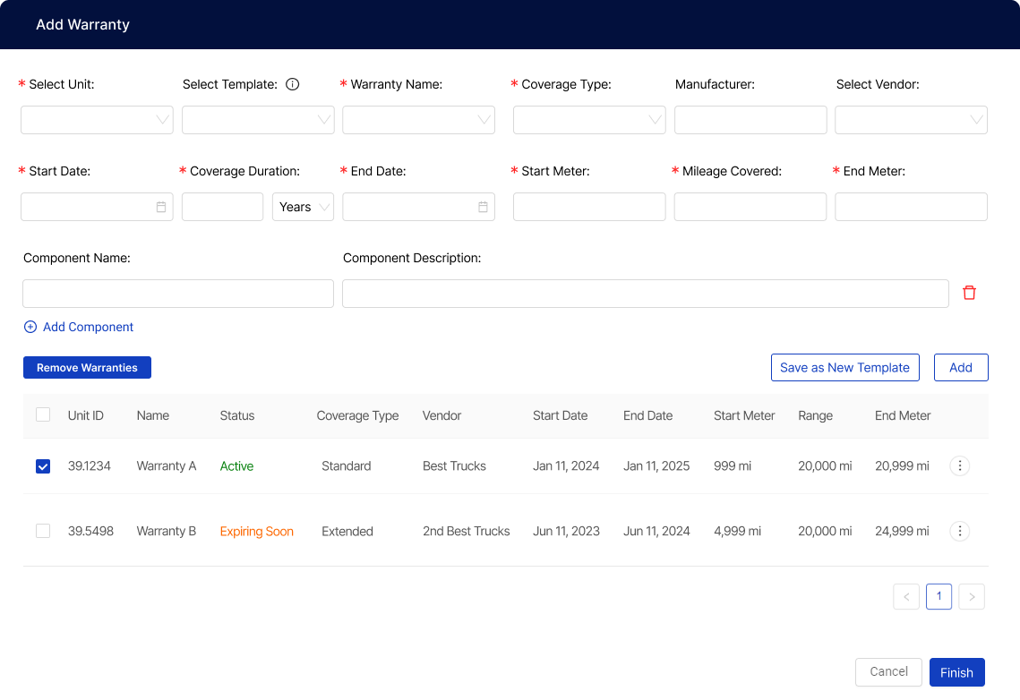 Track Purchase Orders by Asset or Component